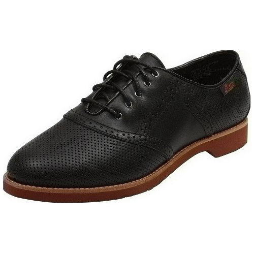 Go for a classic look with a modern edge in the Bass Enfield saddle shoe. This women's oxford features a leather or leather/perforated leather upper with a traditional saddle-shoe design. The polyurethane midsole and lightly padded footbed keep you comfortable. A non-marking EVA sole lends lightweight traction to the Bass Enfield shoe.
