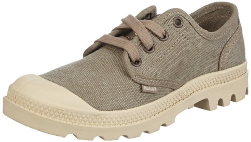 I bought a pair Palladium canvas Oxfords 27 years ago for yard shoes. I know, because that's the year we painted the house and there was still paint spatter on the shoes. I love them because they are so sturdy, with safe gripping soles, but light, breathable canvas tops which dry well after getting wet in the garden. This spring I knew it was time to give them up as the canvas has finally just worn out. I started shopping online but was dismayed that my searches for garden shoes yielded mostly clogs. Then I noticed the little tag on my old shoes that said "Palladium." I searched and voila! My exact same shoes! I was thrilled to plunk down $50 and more thrilled when they got here. I couldn't be happier.