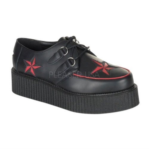 CLEARANCE,Demonia,Women's Shoes*CREEPER-423, 2", Blk Lea/Silver Star P/F CreeperAs designer shoes, these are often narrower and tighter than usual.Take this into consideration when you choose your size, especially if you are half size.This style comes in mens size. The size difference between men and women is 2, so if you want women size 8, you should choose size 6 here.