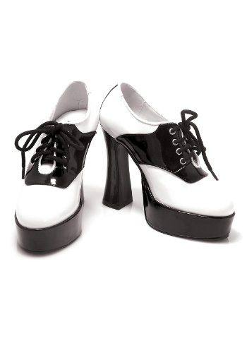 - Includes One Pair Of Adult Black And White Saddle Style High Wide Heel Shoes